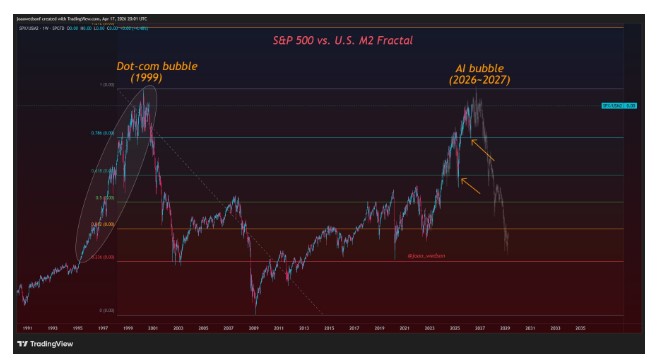 Όμως, ο Μπάφετ δεν είναι ο μοναδικός που αντιμετωπίζει τη μεγάλη άνοδο των χρηματιστηριακών αγορών από το 2023 με προβληματισμό. Το ίδιο συμβαίνει με εκείνους που χρησιμοποιούν τον δείκτη S&P 500 προς την αμερικανική προσφορά χρήματος Μ2.