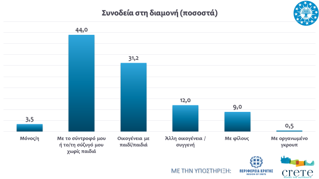 Αυξημένο είναι το ποσοστό (44%) των αλλοδαπών επισκεπτών που πραγματοποιούν διακοπές με τον/τη σύζυγο/σύντροφο, ενώ αντίθετα μειωμένο είναι το ποσοστό (31%) εκείνων που προτιμούν τις οικογενειακές διακοπές με παιδιά σε σχέση με την προηγούμενη τουριστική περίοδο.
