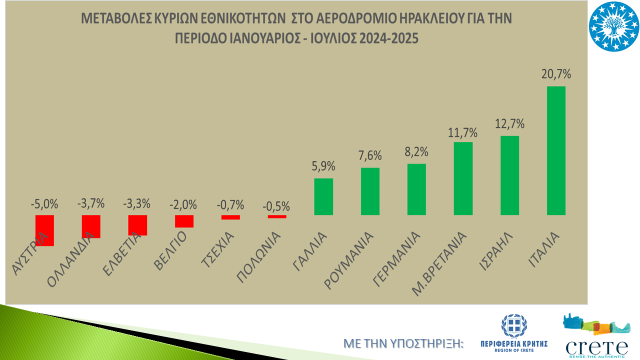 Αναφορά γίνεται στις πιο πρόσφατες αφίξεις αλλοδαπών τουριστών που έχουν δημοσιευθεί από την Fraport-Greece για το αεροδρόμιο Χανίων και από την Υπηρεσία Πολιτικής Αεροπορίας Ηρακλείου, με σκοπό να αξιολογήσει την έως τώρα φετινή τουριστική κίνηση στην Κρήτη και να τη συγκρίνει με την αντίστοιχη τελευταία περίοδο του 2024.