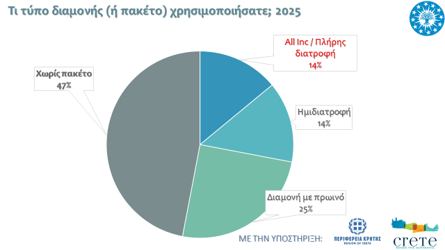 Σταθεροποίηση προτιμήσεων παρατηρούμε στον τύπο καταλύματος αλλά και στα πακέτα διαμονής που προτιμούν οι αλλοδαποί τουρίστες. Πιο συγκεκριμένα, υπάρχει σταθεροποίηση στα ποσοστά των τουριστών που προτιμούν το λεγόμενο πακέτο «all inclusive» γύρω στο 15%, με σχεδόν τους μισούς αλλοδαπούς επισκέπτες να μην προτιμάει κανένα πακέτο.