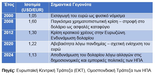 Ιστορική εξέλιξη της ισοτιμίας USD/EUR