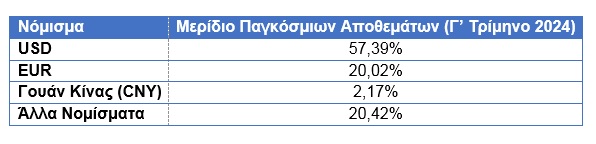 • Ανταγωνιστικά Στοιχεία: Η άνοδος της τιμής του χρυσού και η εμφάνιση ψηφιακών νομισμάτων (μεταξύ άλλων, και το ψηφιακό ευρώ) αναδιαμορφώνουν την παγκόσμια σκηνή.