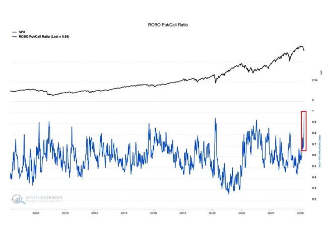 Όμως, την ίδια στιγμή, οι επενδυτές λιανικής στο αμερικανικό χρηματιστήριο έφτασαν να αγοράζουν μεγαλύτερη προστασία (αγορές δικαιωμάτων προαίρεσης πώλησης ή put options) για ενδεχόμενη πτώση των αμερικανικών μετοχών από ποτέ.