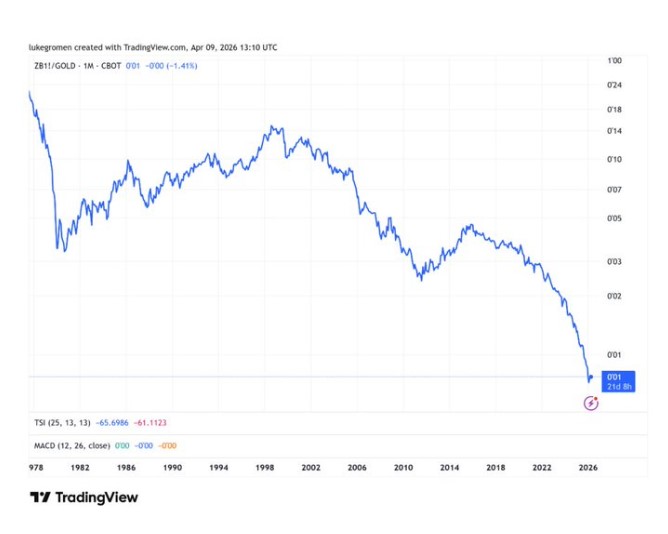 Τα μακροπρόθεσμα κρατικά ομόλογα χάνουν έδαφος έναντι του χρυσού για μεγάλο χρονικό διάστημα. Με άλλα λόγια, ένα 10ετές ομόλογο ονομαστικής αξίας 1.000 δολαρίων ή ευρώ αγοράζει ολοένα και λιγότερες ουγκιές χρυσού. Αρκετοί αποδίδουν αυτή την εξέλιξη στην απώλεια εμπιστοσύνης της επενδυτικής κοινότητας απέναντι στις κυβερνήσεις και στη διαχείριση των δημόσιων οικονομικών που έχει οδηγήσει σε σημαντική αύξηση του δημοσίου χρέους προς το ΑΕΠ.