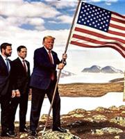 Ο Τραμπ εμφανίζεται μαζί με τον αντιπρόεδρο Τζέι Ντι Βανς και τον υπουργό Εξωτερικών των ΗΠΑ Μάρκο Ρούμπιο, δίπλα από μια πινακίδα με την ένδειξη «Γροιλανδία - Αμερικανικό έδαφος από το 2026».20 Ιαν 2026 - 11:41